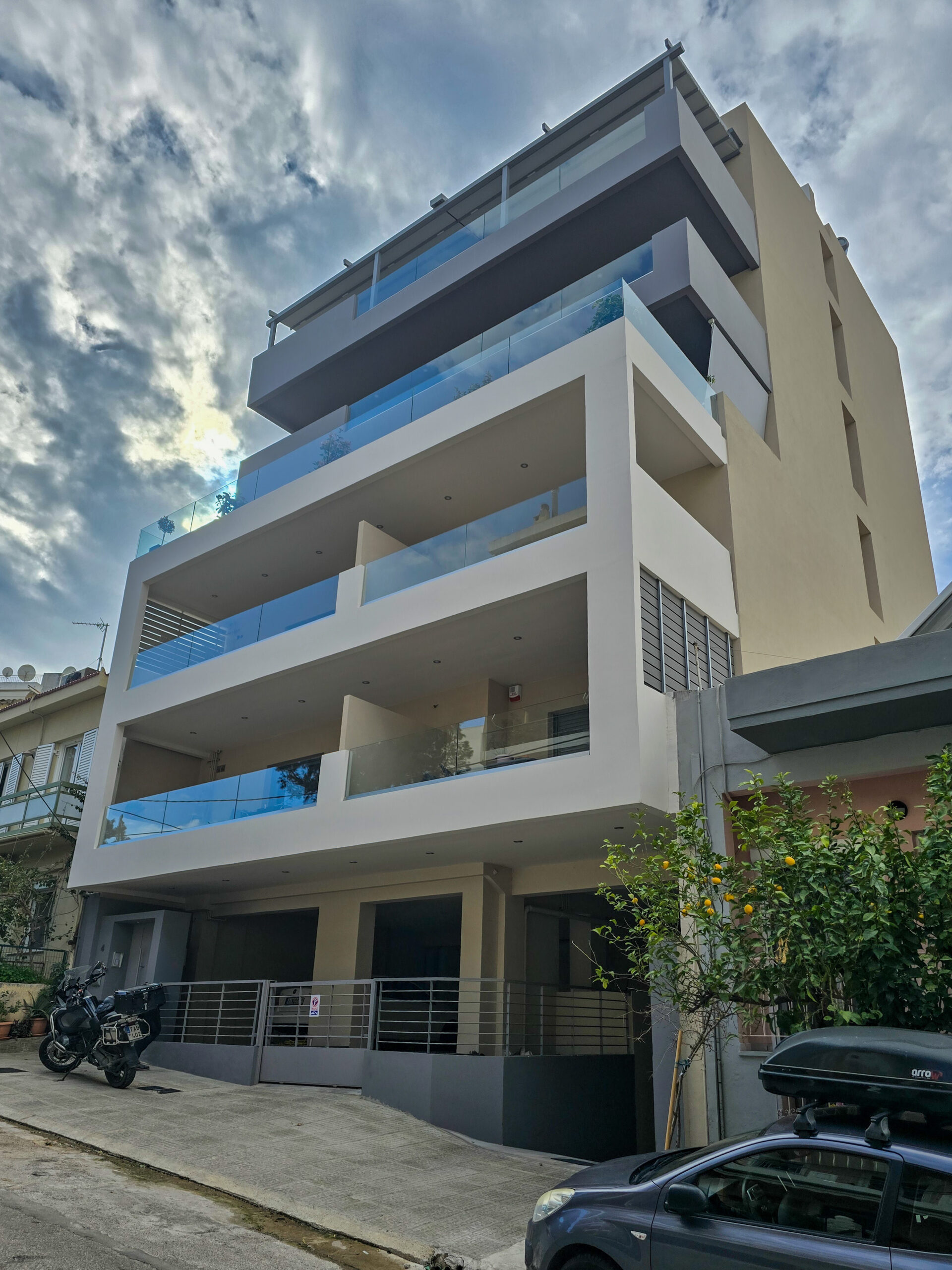 Γωνιακό κτίριο υψηλών προδιαγραφών και minimal αισθητικής. Ο σχεδιασμός εξασφαλίζει φυσικό φωτισμό όλη την ημέρα συνδυάζοντας την πολυτέλεια με την πρακτικότητα.