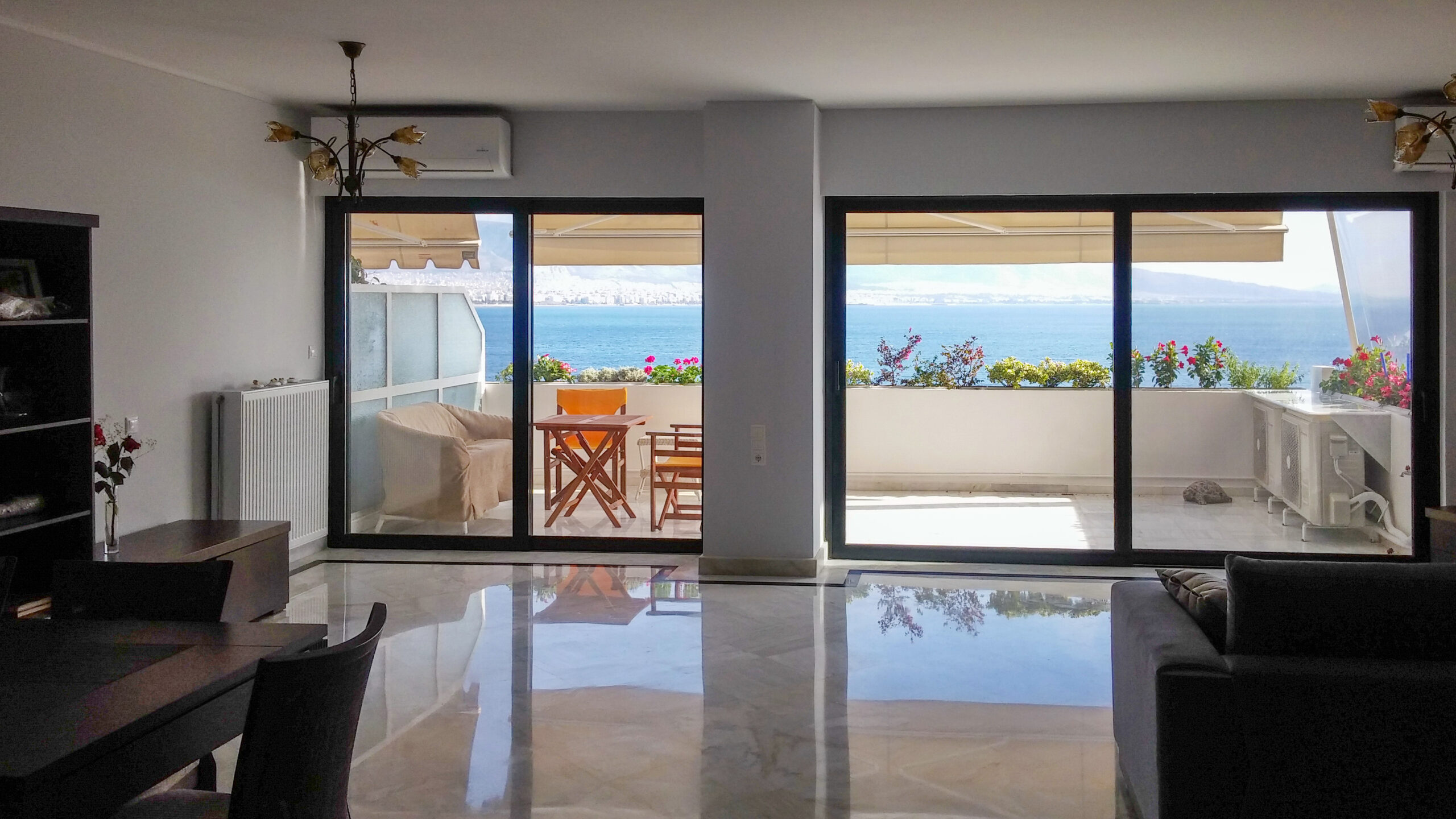Σύγχρονη ανακαίνιση διαμερίσματος στον Πειραιά, με θέα στη θάλασσα και έμφαση στην άνεση, τη φωτεινότητα και τη λιτή αισθητική.