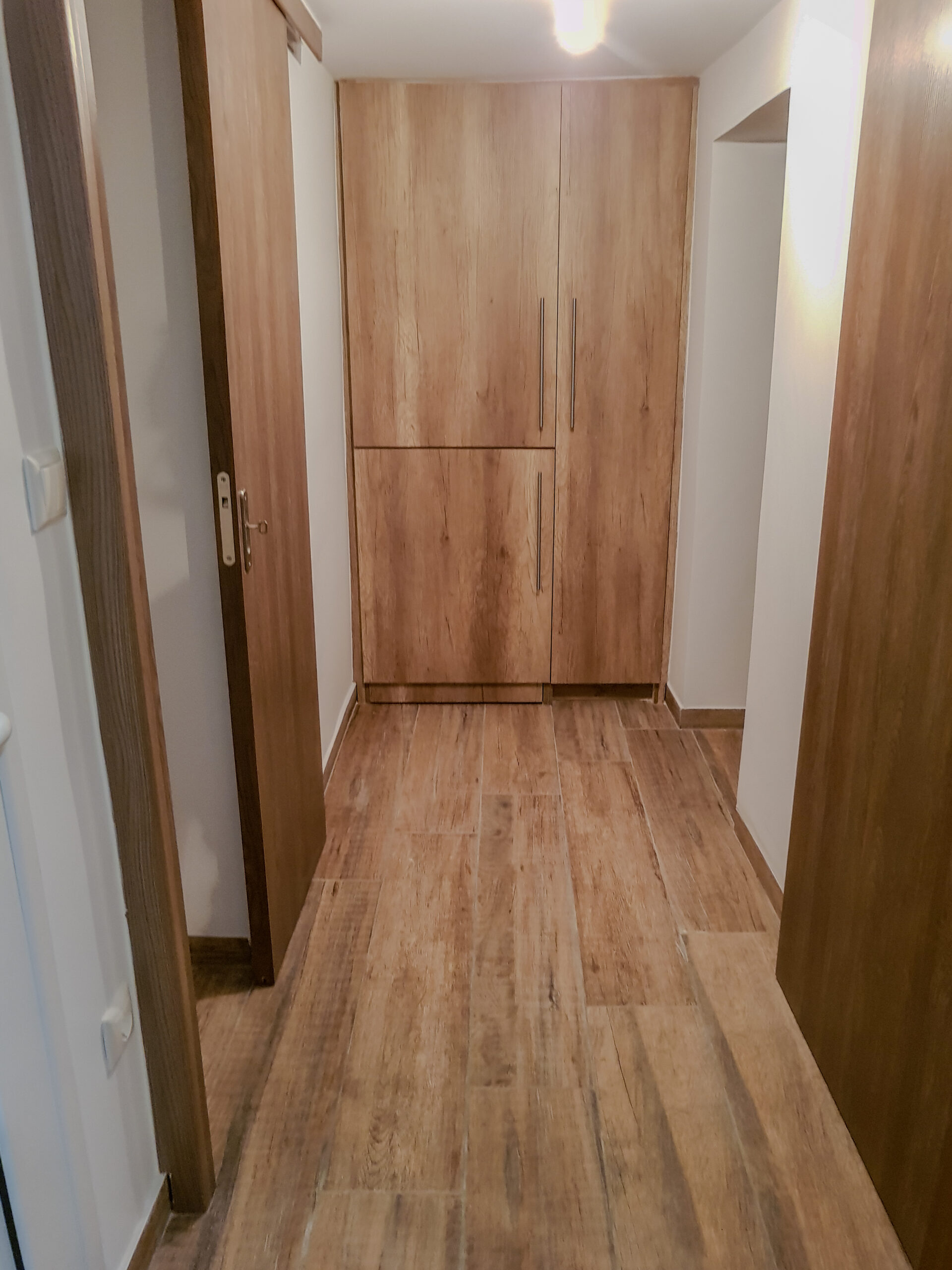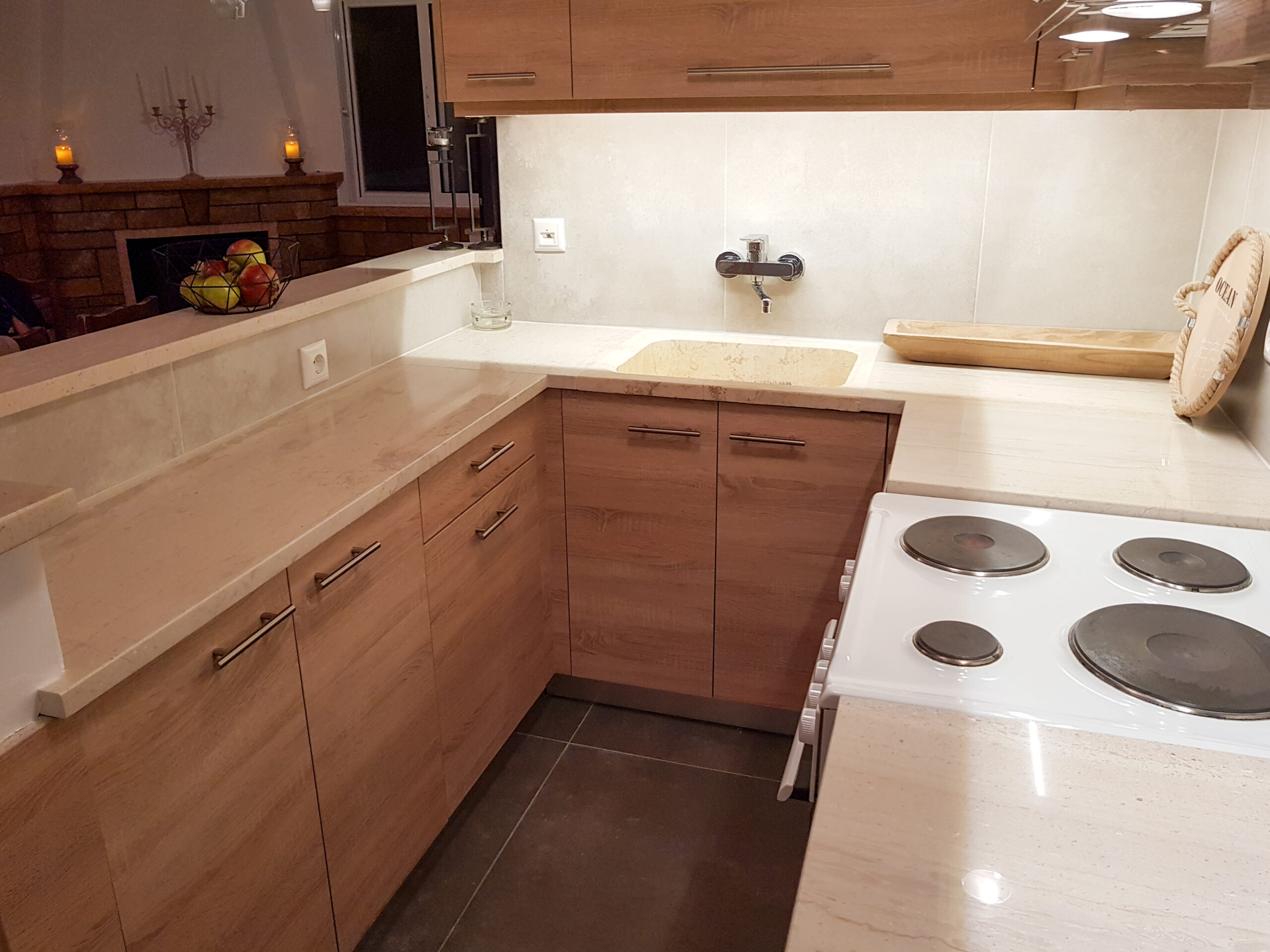 Πλήρης αναδιαμόρφωση κουζίνας, μπάνιου και κοινόχρηστων χώρων με έμφαση στη λειτουργικότητα και την αισθητική ενοποίηση.